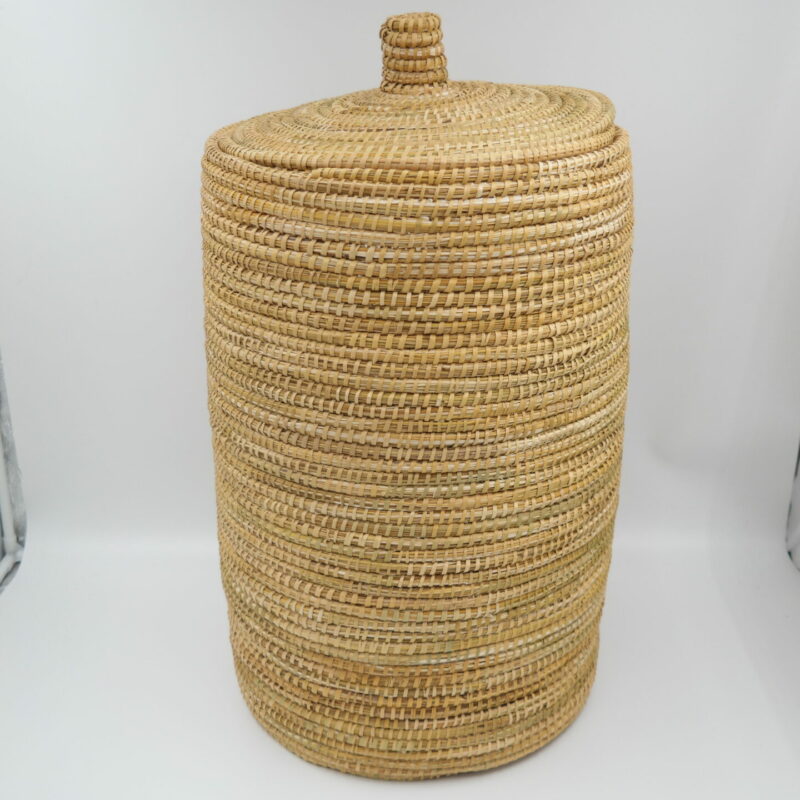High wicker basket with lid