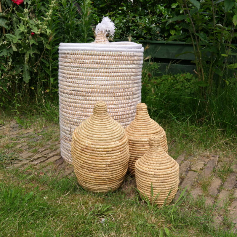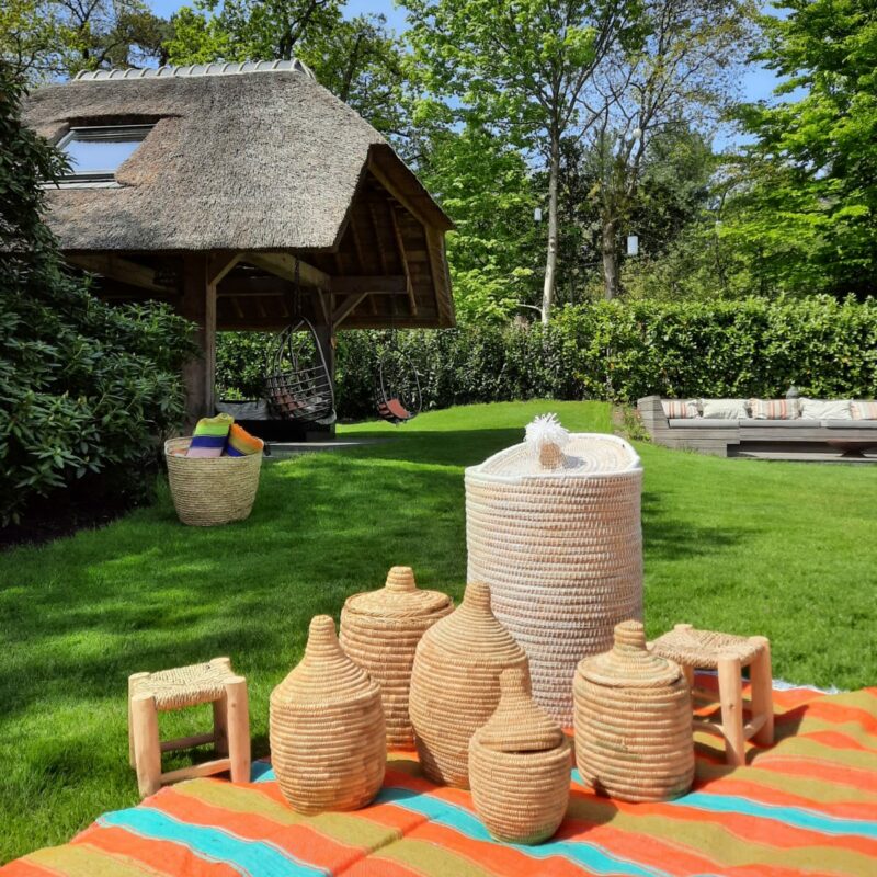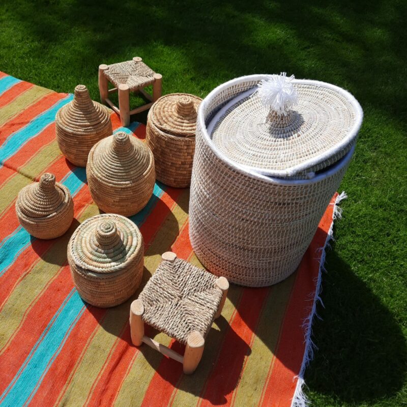 In addition to being a beautiful and elegant storage option in your home, this basket also does something else; it provides income for the ladies of a women's cooperative in Morocco: where this basket is made. These baskets are woven by hand and therefore unique and personal. Here we show how that happens.