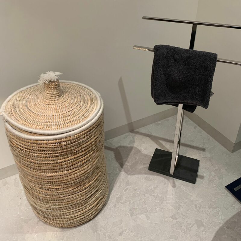 Prachtige mand met deksel, goed afgewerkt en staat mooi in ons grote toilet en fungeert voor opbergplek toiletrollen. Ook leuk als speelgoed mand of wasmand of opbergplek voor plaids. Multifunctioneel dus en een aanrader!