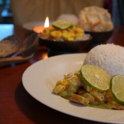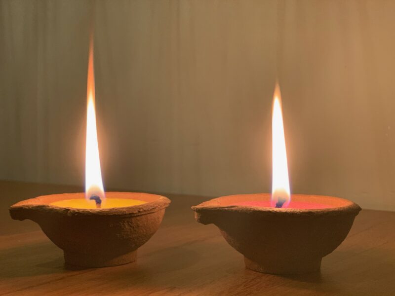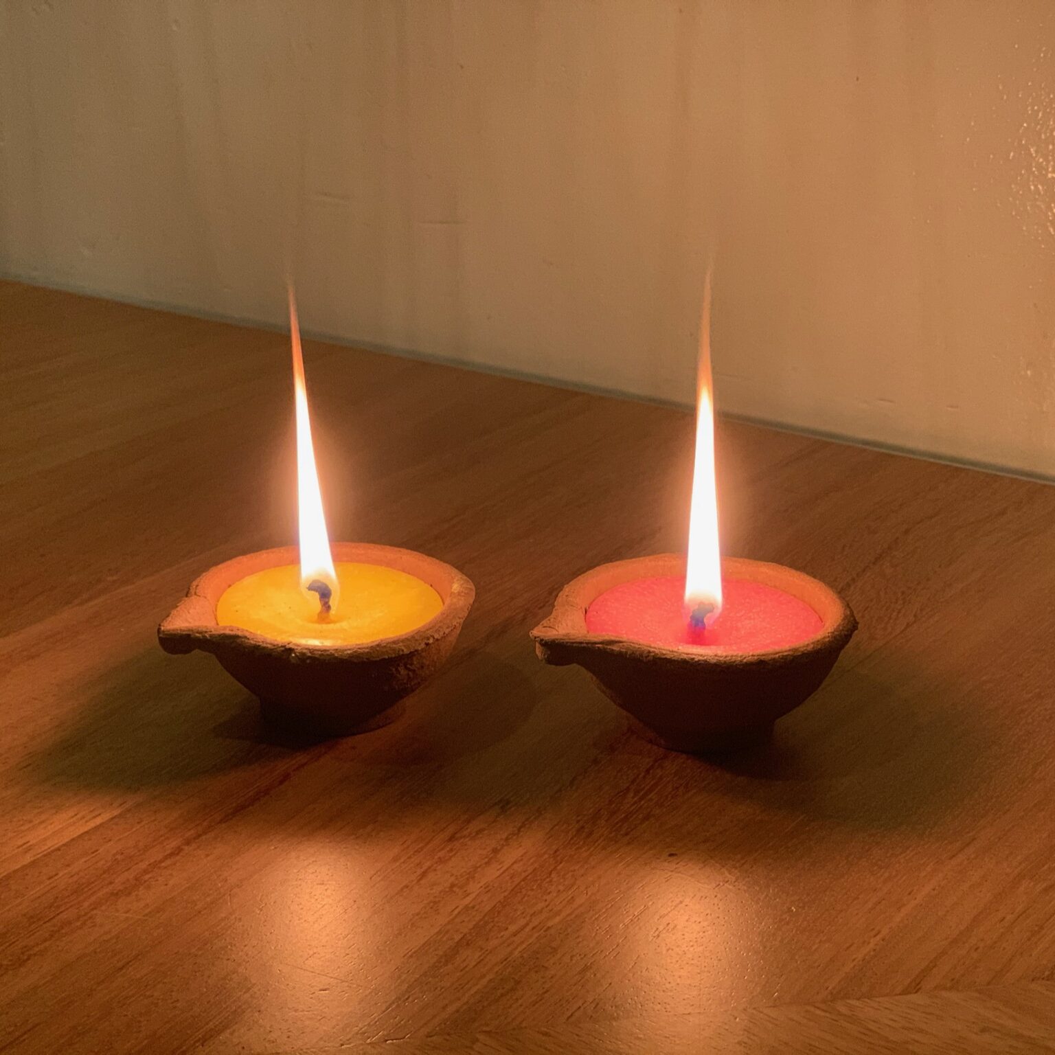 The Sri Lankan uses coconut oil and a wick. We have poured a candle into the oil lamp for you. The candle has a subtle fresh scent.