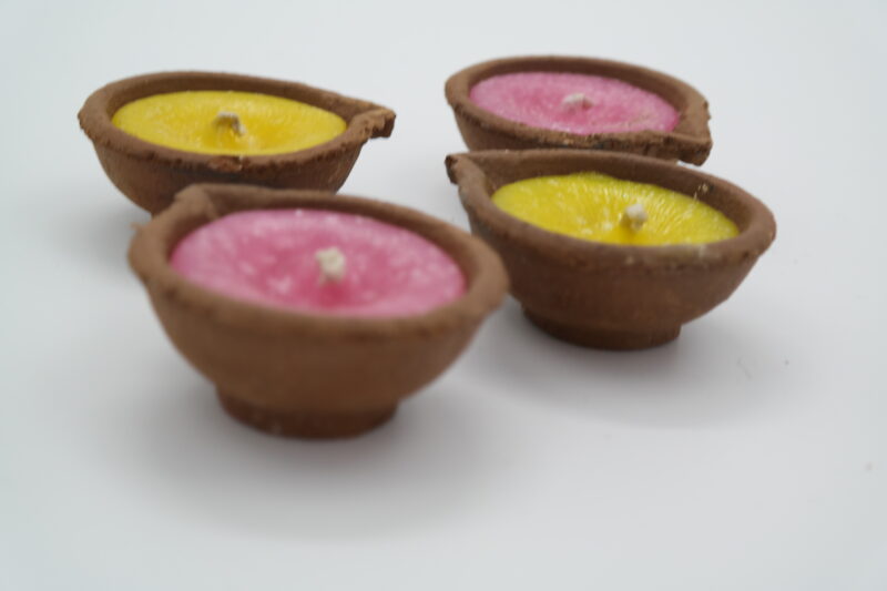 The oil lamps are packed per 4 in self-made boxes. The colors of the candles are different. The scent of the candles is the subtle scent of fresh cinnamon. The candles burn for about 4 hours. You can then reuse the oil lamps.