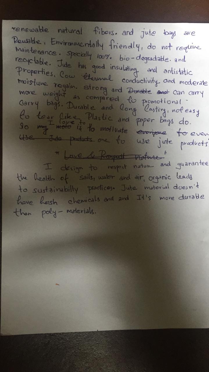 I design to respect nature and guarantee the health of soils, water, and air, organic leads to sustainability practices. Jute material doesn’t have harsh chemicals and it’s more durable than poly-materials."