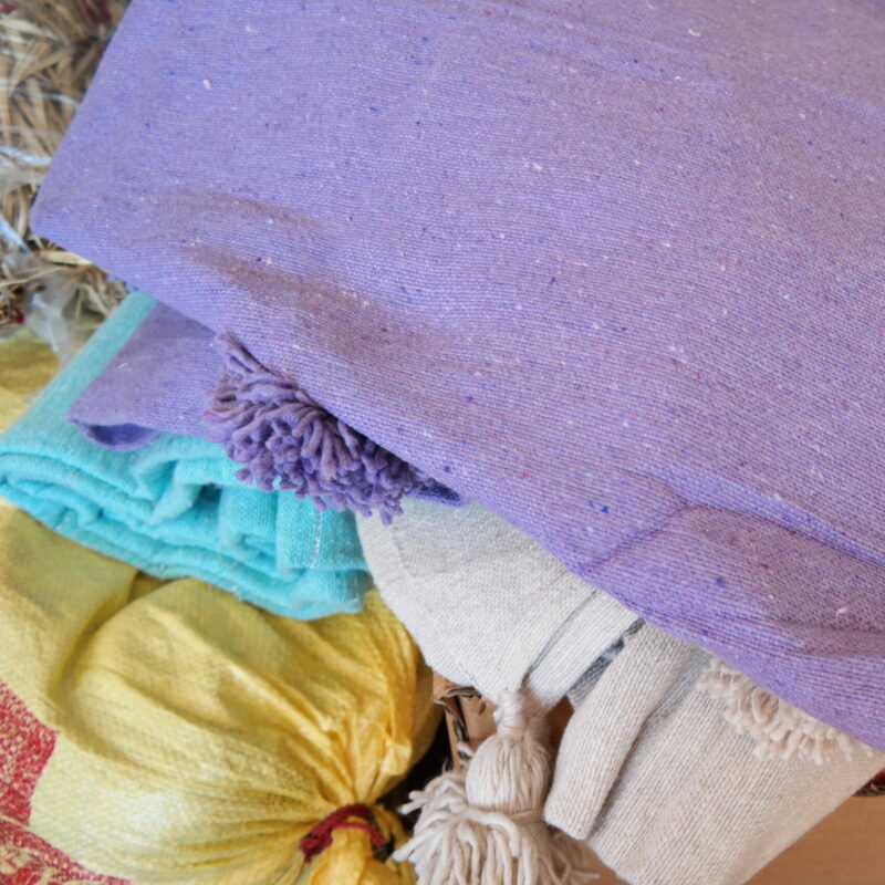 This plaid and other items (there are many more in stock) are made around Marrakech. Because we sell the items fair-trade and we have direct contact with the makers, we can show you here how weaving works.