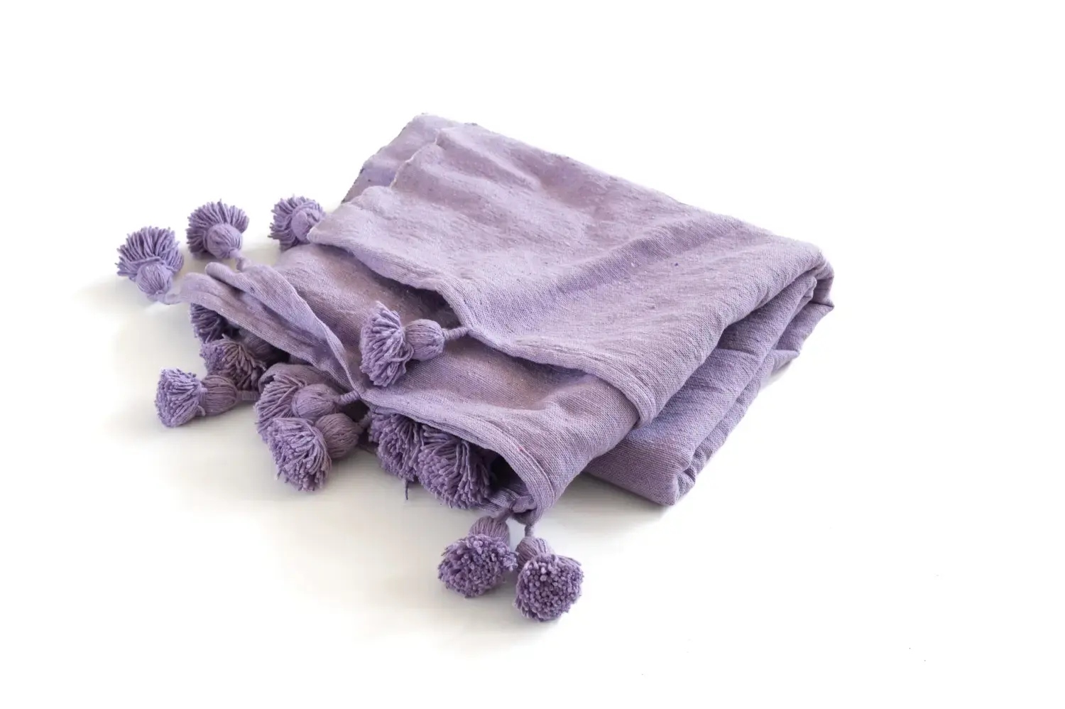 This lavender cotton plaid with poms is a very nice soft plaid with a beautiful color.