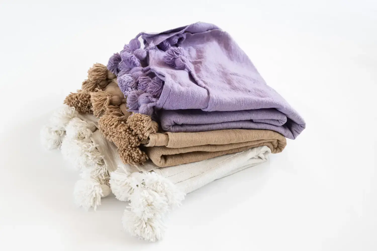 Looking for something else? Without poms? Different color? Round? Please do not hesitate to contact us! We are happy to discuss the options and can deliver in many different colors.