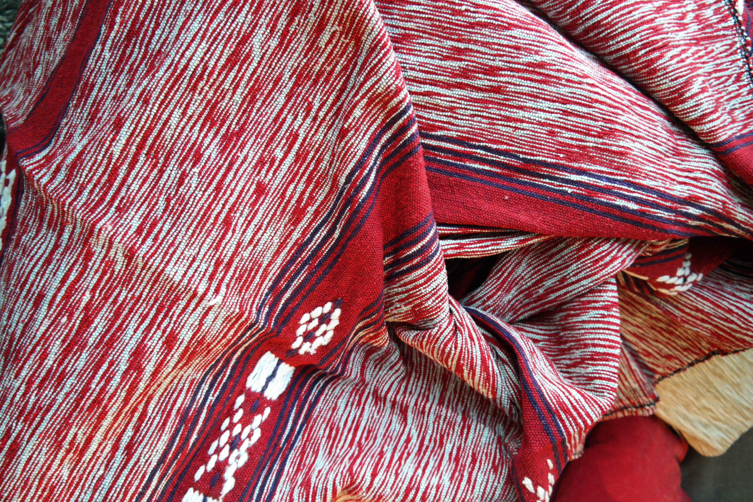 Woolen plaid, red, size 270 x 160 cm. Handmade in Morocco.