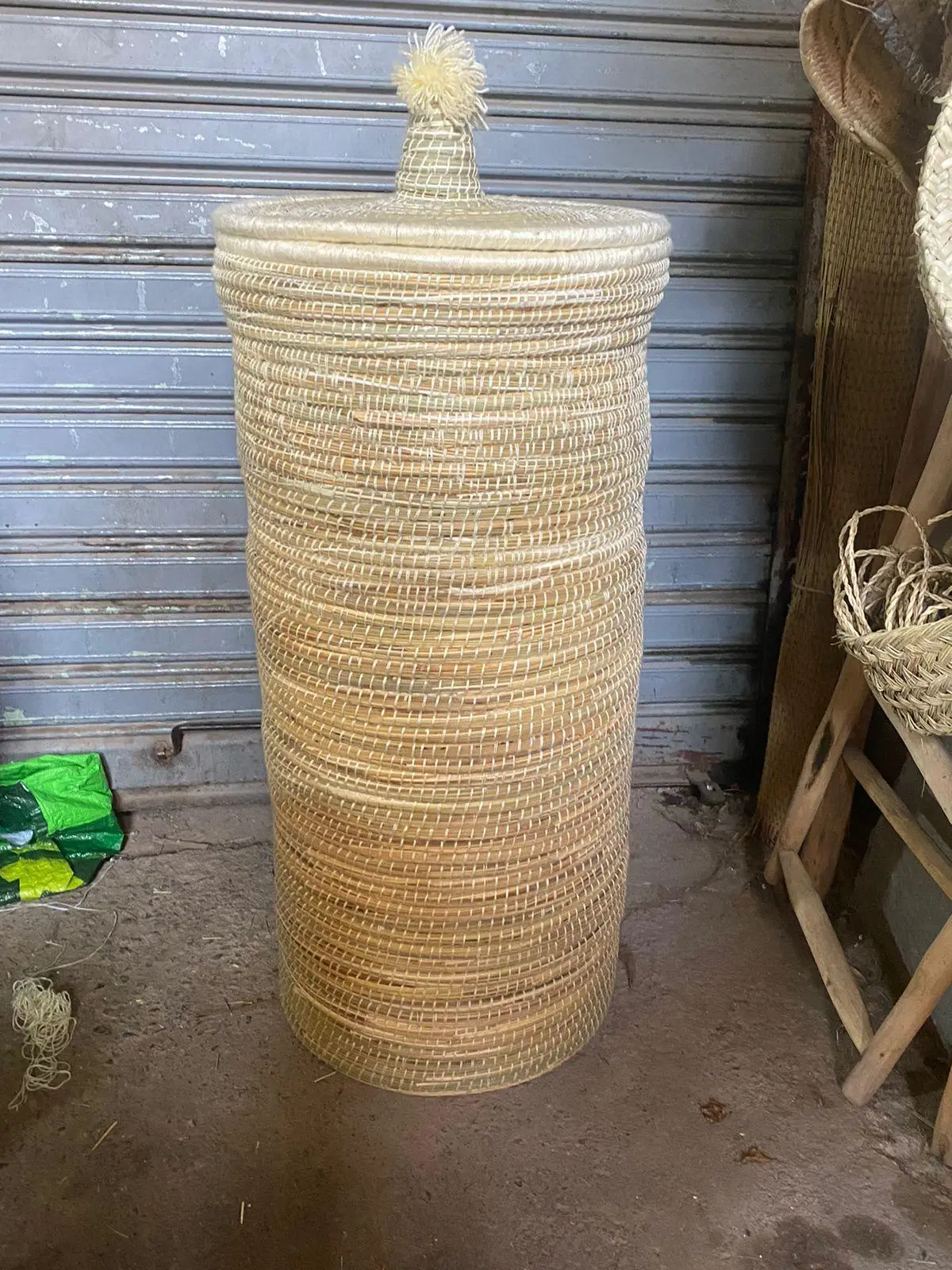 This basket is very special with its 90 cm height. It has a diameter of approximately 40 cm. The size of this basket really makes it a very special item. In addition, this basket - due to the closing lid - is also ideal for storing items. How about this basket as a laundry basket? We include a laundry bag; please contact us. In addition, it can also perfectly store a whole load of toys or a set of nice blankets. In short; You can really use this nice storage basket in many ways.