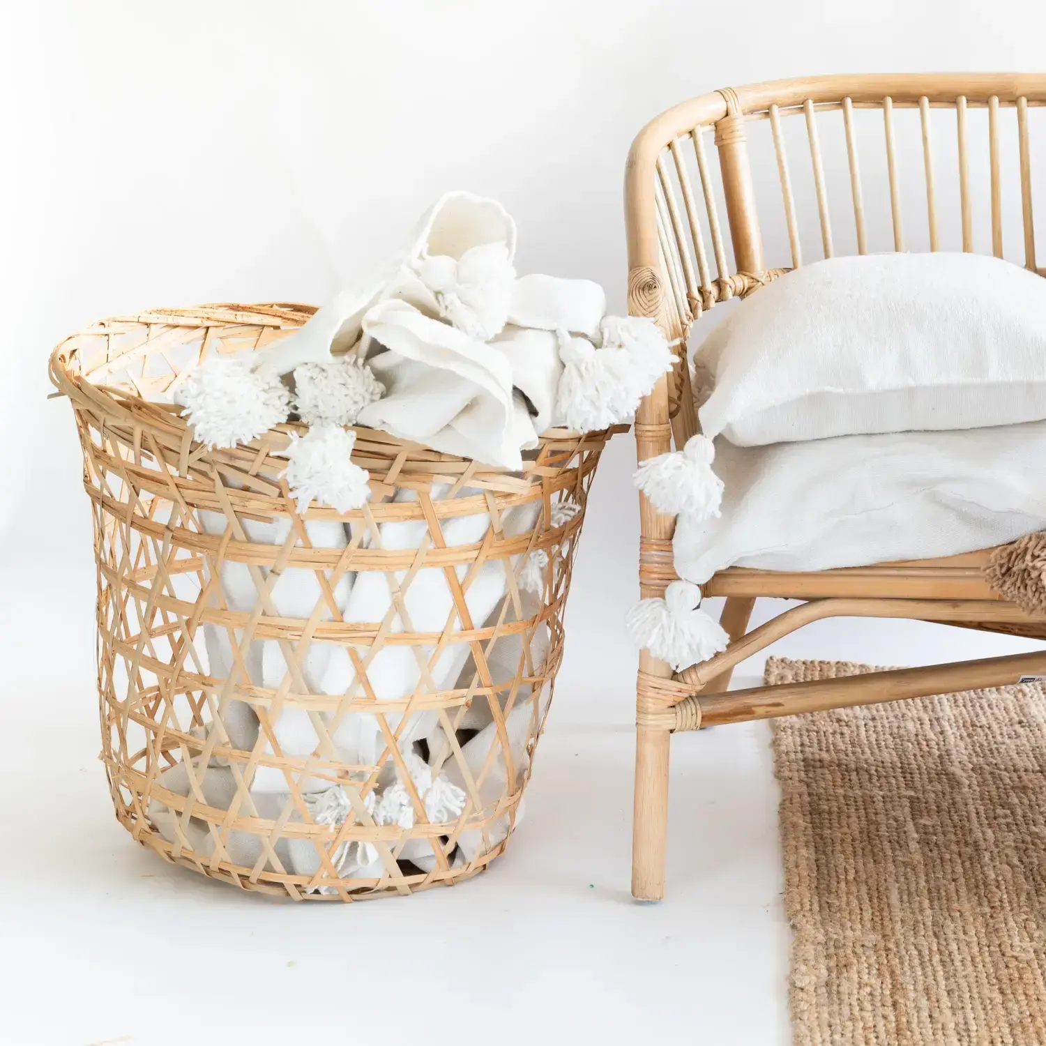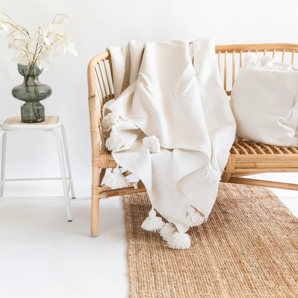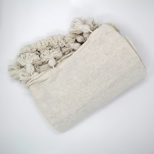 This white cotton blanket with poms is actually indispensable at home and can be used in so many different ways.