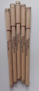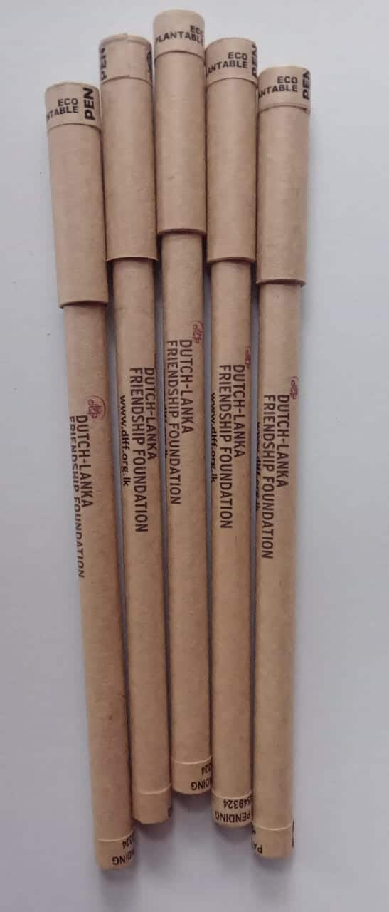 Sugi’s dochter Christina heeft een bedrijf dat pennen maakt, eigenlijk met hetzelfde concept: als de pennen leeg zijn kunnen ze gezaaid worden. Ook de pennen kunnen worden voorzien van een logo of met een andere persoonlijke boodschap.