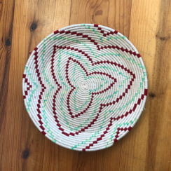 Grote rieten schaal met rood en groen motief