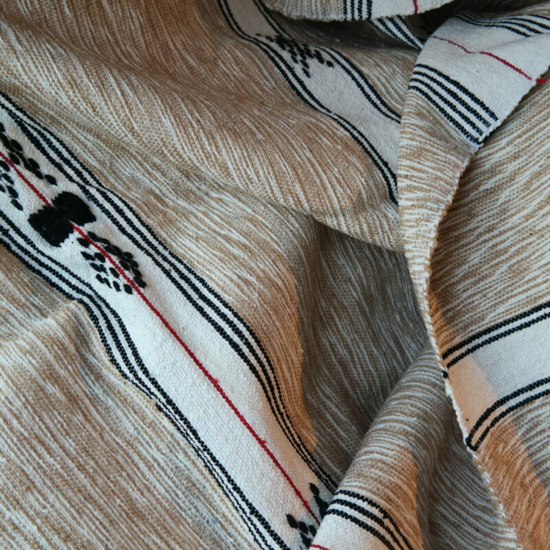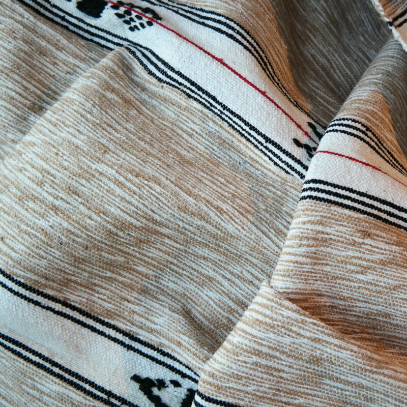 Dit plaid en andere artikelen (er is nog veel meer op voorraad) zijn gemaakt in een thuisweverij net buiten Marrakech. Omdat we de spullen fair-trade verkopen en we direct contact hebben met de makers kunnen we je hier laten zien hoe dat in z'n werk gaat.
