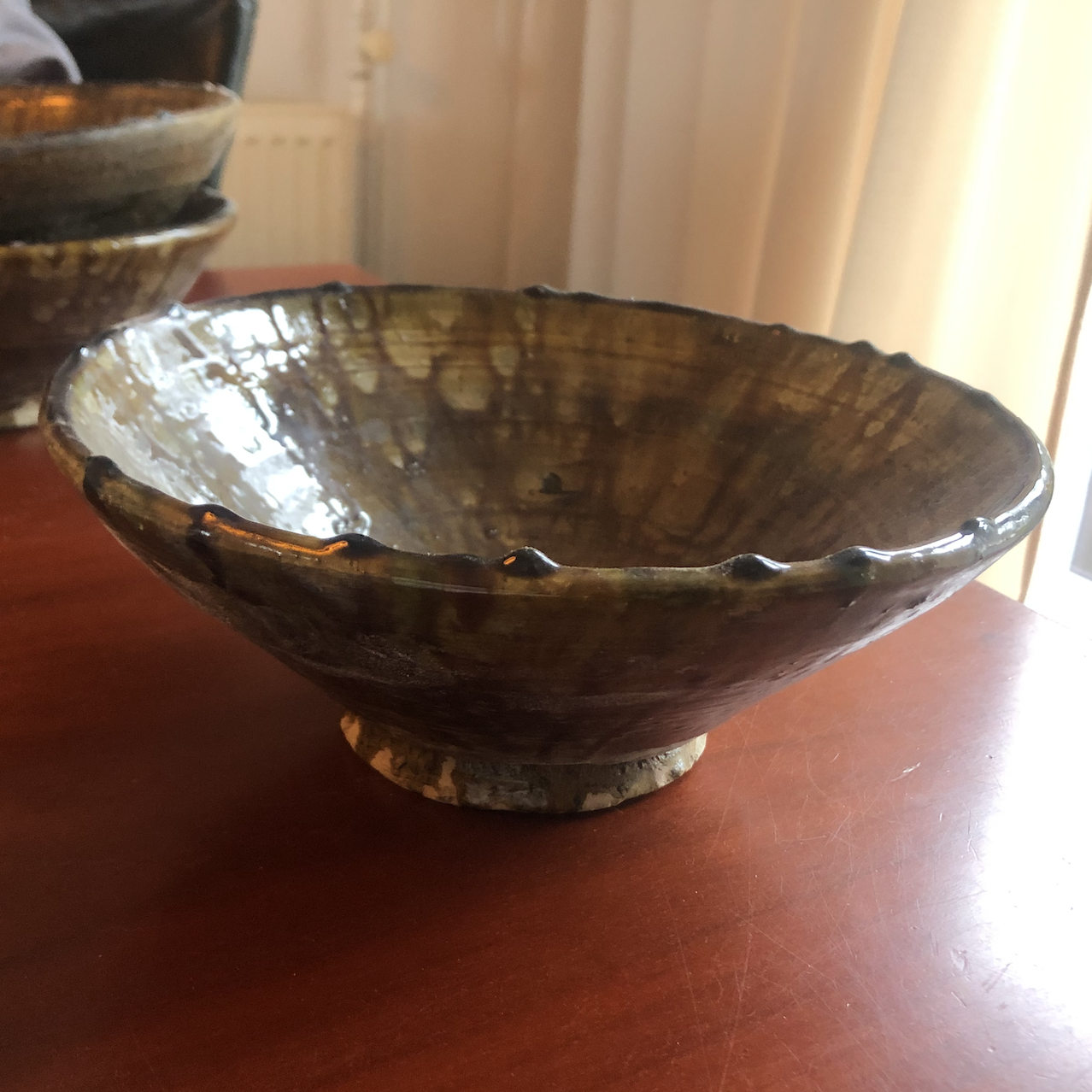 Kenmerken van de okergele aardewerken schaal uit Tamegroute zijn: