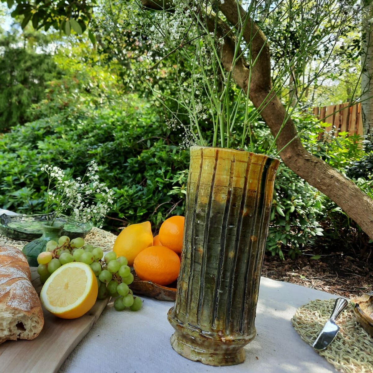 Op zoek naar een mooi, decoratief en handgemaakt accessoire, waarmee je ook nog de maker direct aan een eerlijk inkomen helpt? Dan is deze gele aardewerken pot wat je zoekt.
