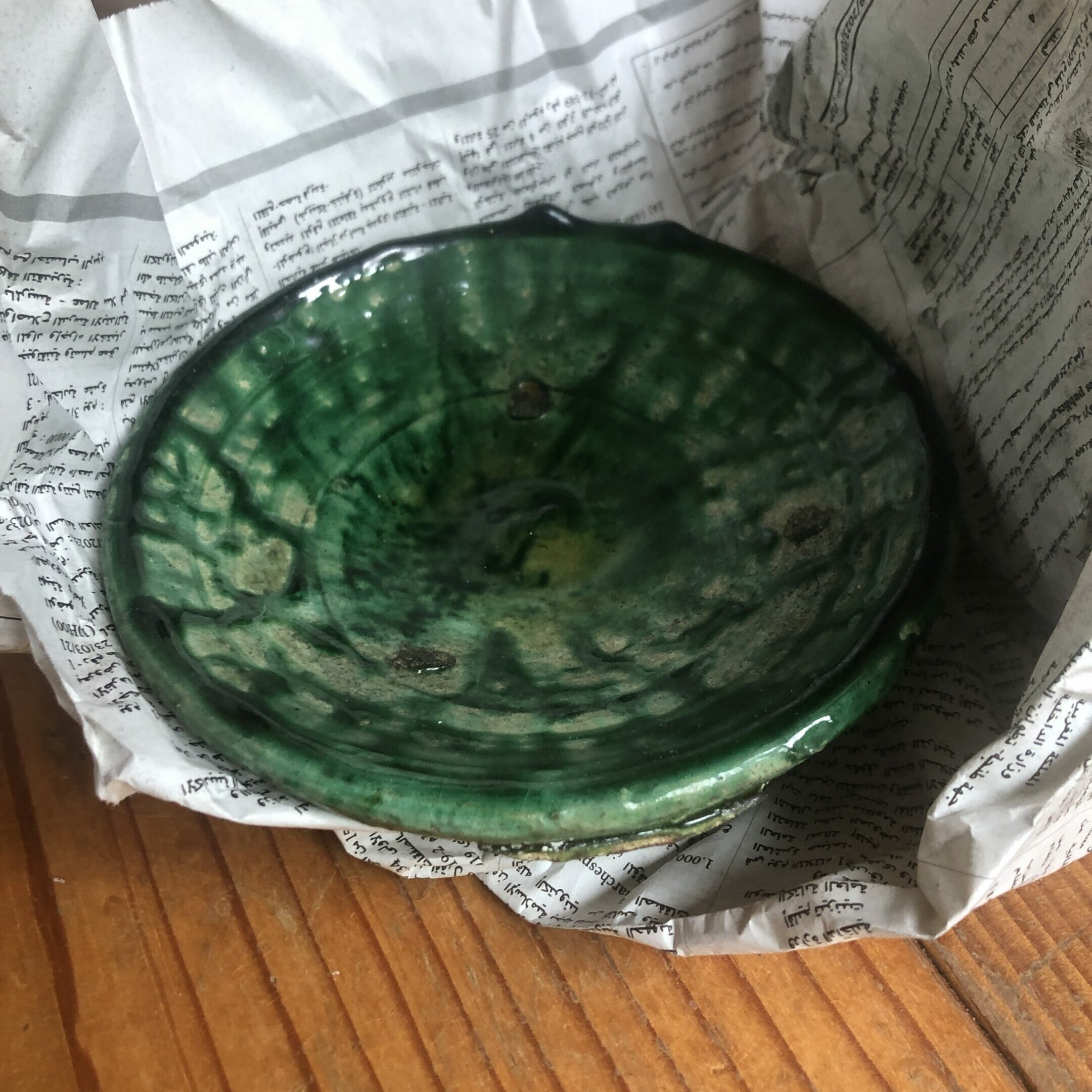 Op zoek naar een fijn groen aardewerken schoteltje? Als aanvulling op je bijzondere servies? Of voor bij je theemok? Dit groene aardewerken amuse bord uit Tamegroute is dan wat je zoekt en echt een hele mooie aanvulling op je servies.