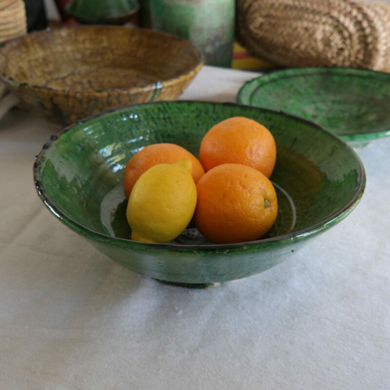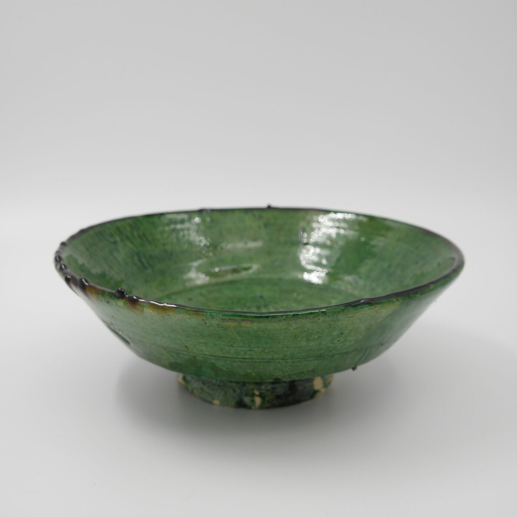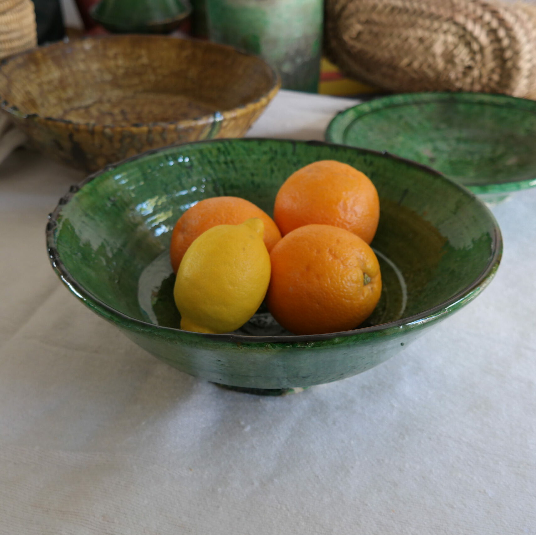 Wat deze schaal zo bijzonder maakt, is haar veelzijdigheid. Zet haar op tafel als fruitschaal – het groene glazuur contrasteert prachtig met citrusvruchten of rode appels. Serveer er een frisse salade in tijdens een diner. Of gebruik haar gewoon als decoratief object: op een dressoir, plank of keukeneiland. Ook leeg is deze schaal een subtiele blikvanger die sfeer en diepte toevoegt aan je interieur.