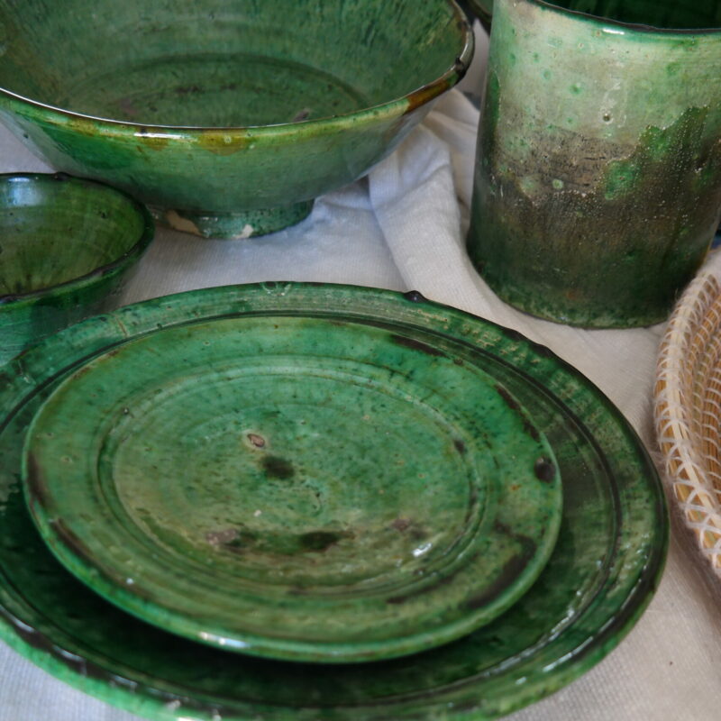 De schotel kan prima gebruikt worden voor een etentje. Hierop zien al je gerechten er bijzonder uit! Maar puur als decoratie of als je groen in je wooninterieur wil, dan is dit een perfect item. Kortom; deze groene aardewerken schotel kan op heel veel manieren gebruikt worden. En past ook goed bij de rest van ons groene Tamegroute aardewerk, zoals de platte schaal en de kommetjes.