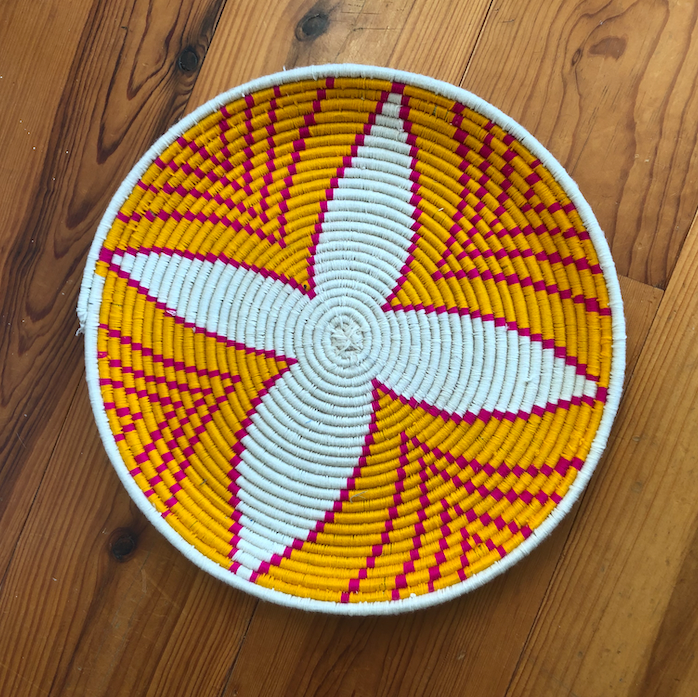 Deze platte schaal is handgemaakt door vrouwen uit Marokko. Door de huidige crisis is hete leven erg zwaar in Marokko en alle beetjes helpen. Met de aanschaf van deze schaal zorg jij voor een eerlijk inkomen in  een Marokkaans gezin.