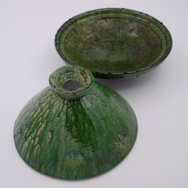 De tajine is niet alleen mooi, maar ook betekenisvol. Hij komt uit Tamegroute, een dorpje waar het maken van dit aardewerk al generaties lang in de familie zit. Alles wordt met de hand gedaan, van het draaien tot het glazuren en bakken in traditionele ovens. Een prachtig stukje vakmanschap dus, dat goed past in een bewust en stijlvol interieur.