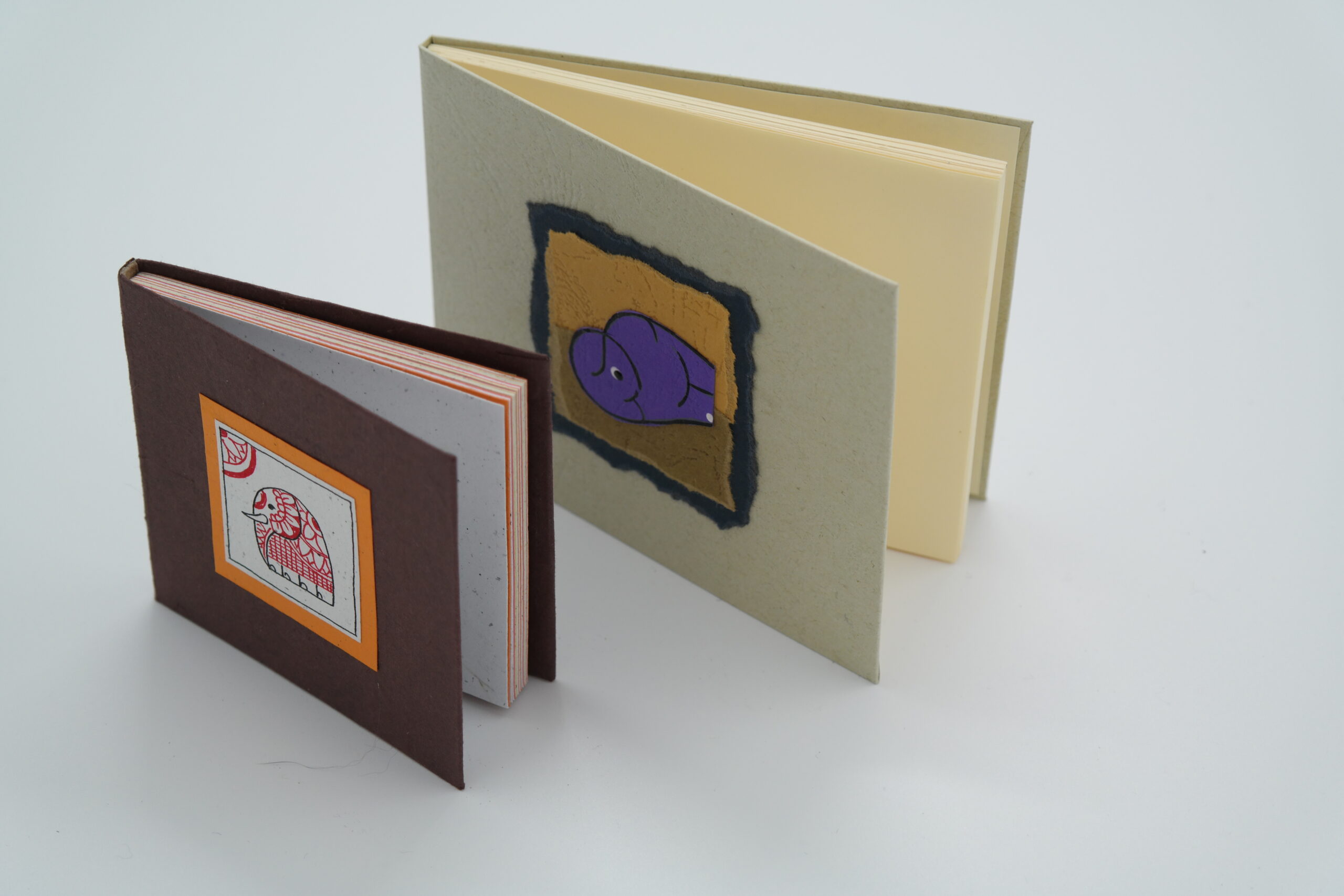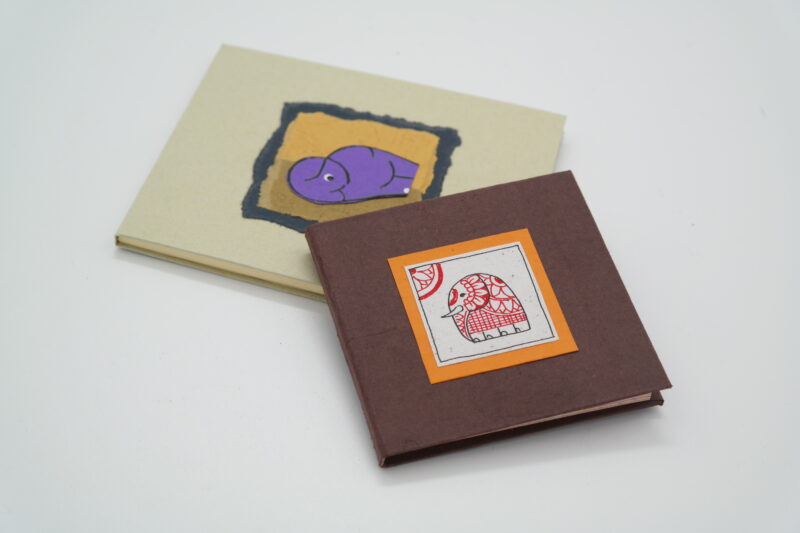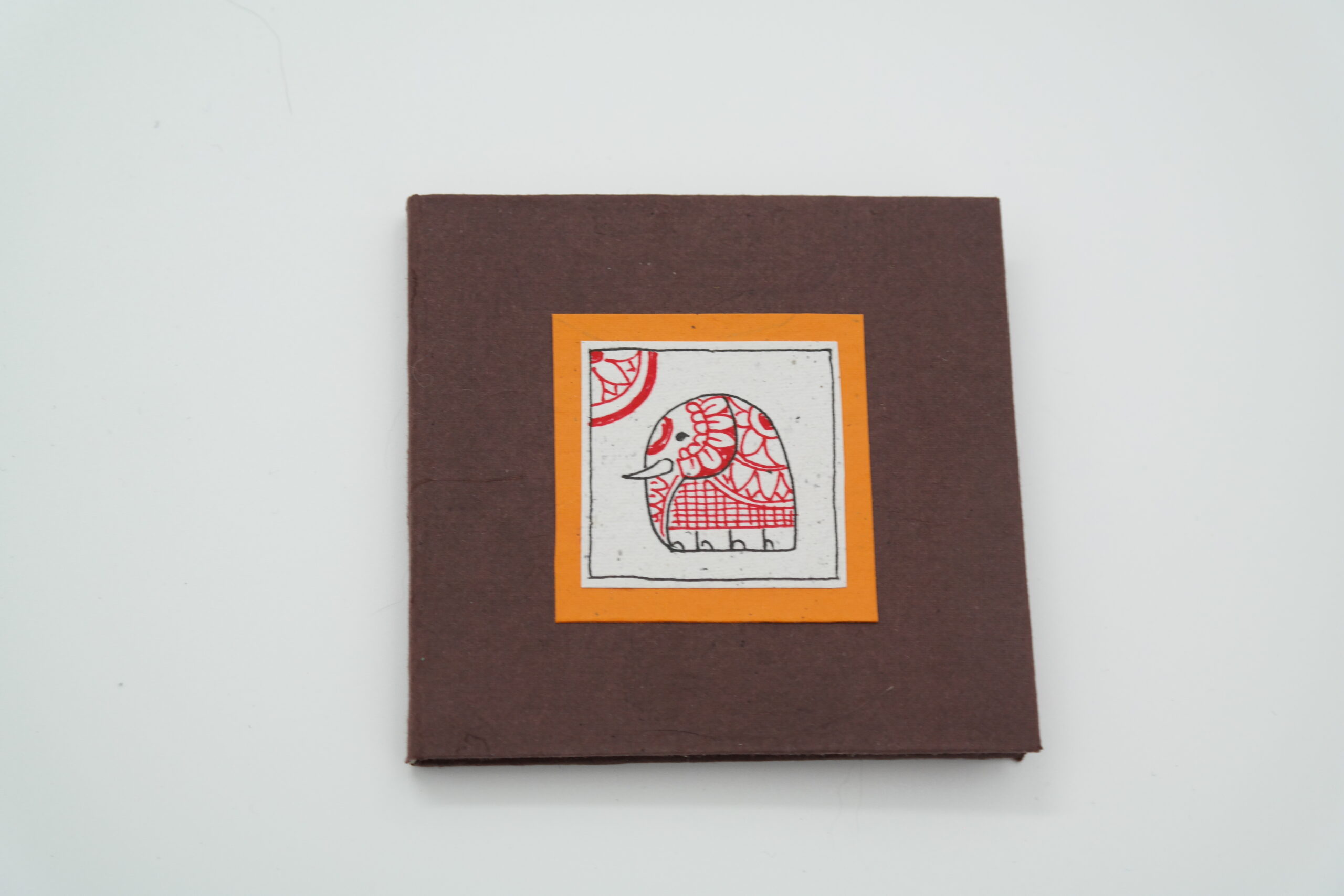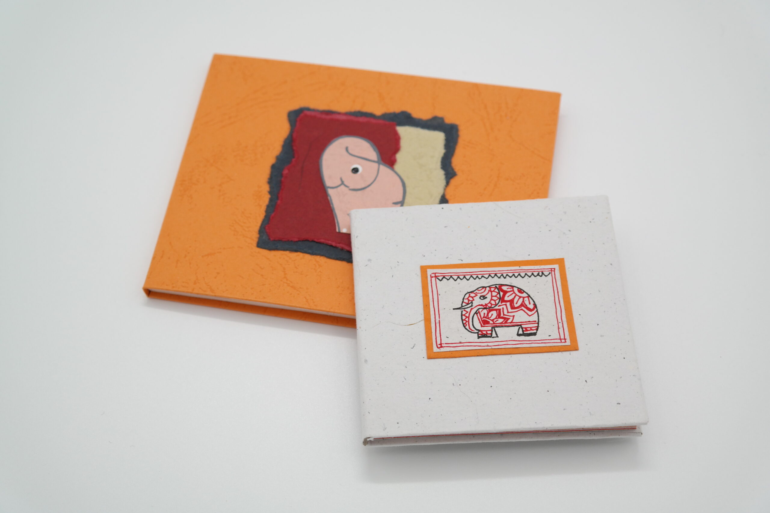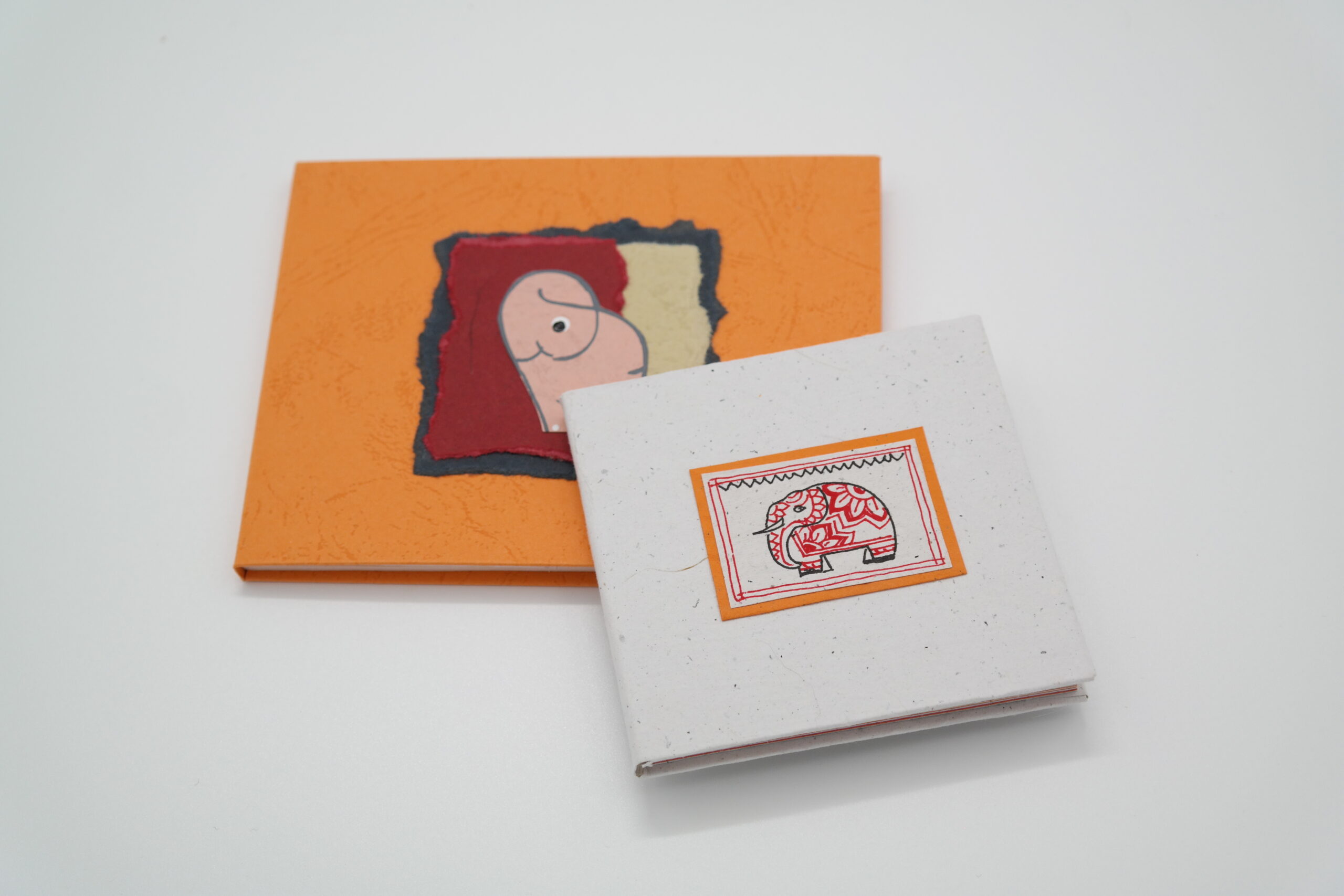 Handgebonden boekjes. Elk boekje heeft een olifantje op de kaft. Welk olifantjes jij ontvangt is een verrassing, want elk boekje is uniek!