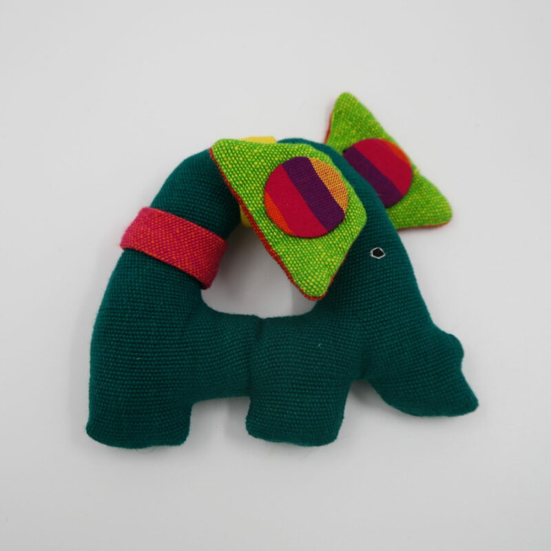 op zoek naar een leuk en duurzaam kraamcadeautje? Wacht dacht je van deze schattige kleine donkergroene katoenen knuffel-olifant uit Sri Lanka?