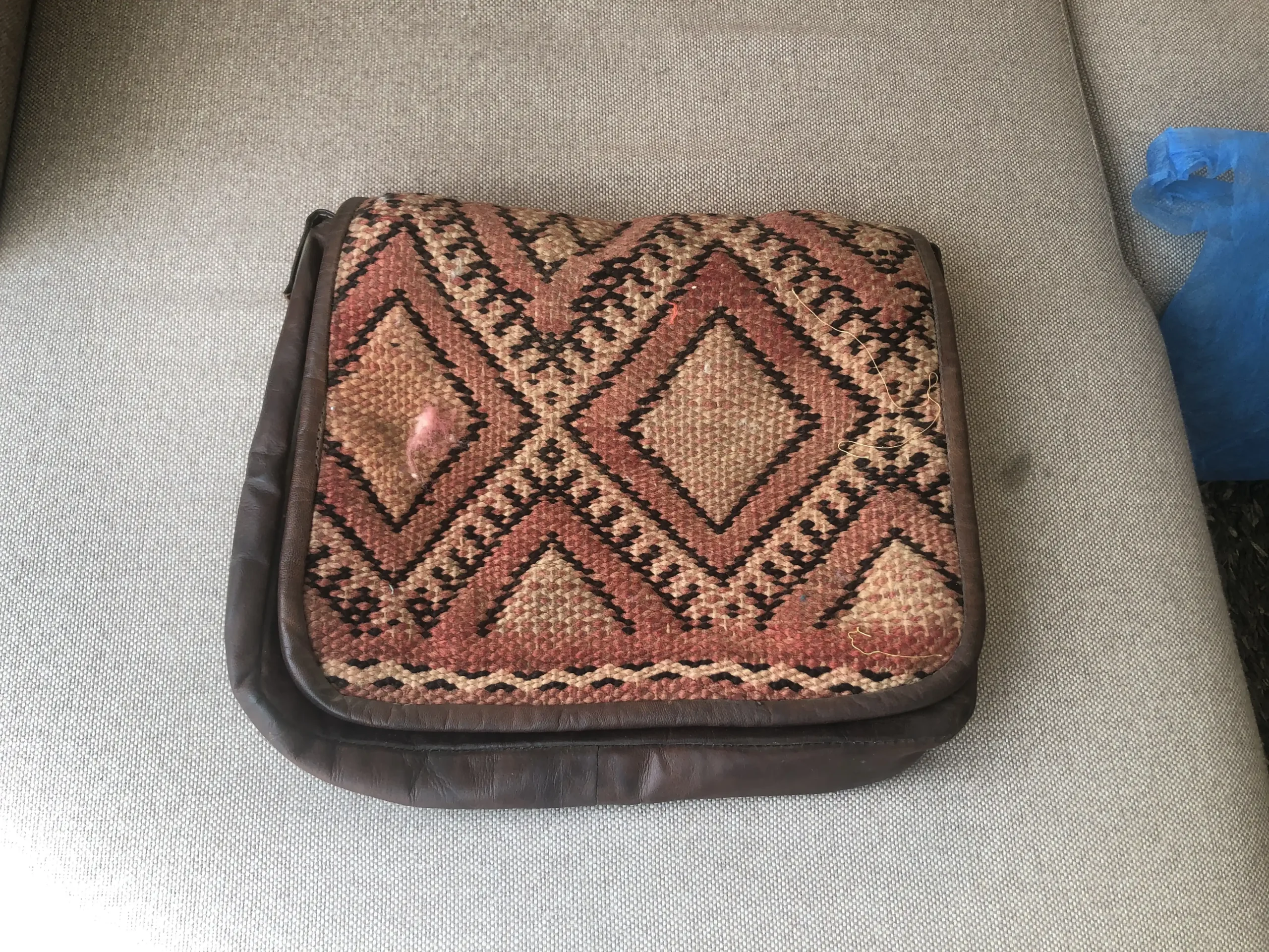 Dan is deze leren schoudertas met kelim ideaal. Deze tas is -door de stof- uniek. Wist je dat deze kelim stof hergebruikt is? Dit is vaak van oud tapijt, of nieuw tapijt met een weeffoutje. Dus je zal er geen andere tas van vinden. En het grappige met deze tas is dat we ook nog een groter exemplaar van (waarschijnlijk) hetzelfde tapijt hebben.