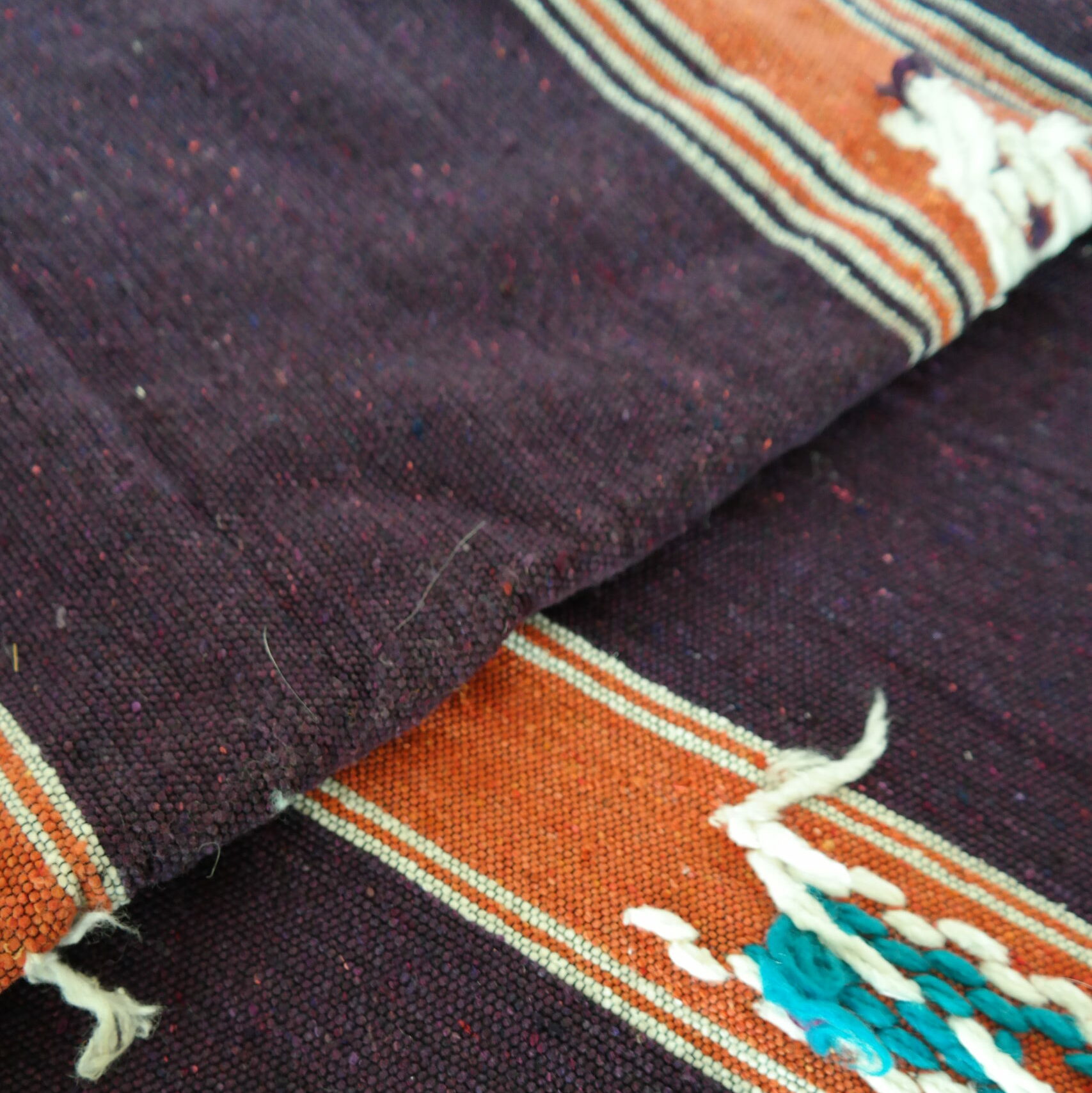 Ook zo'n zin om af en toe lekker op de bank weg te kruipen onder een lekker dekentje? Dat kan met dit schitterende paars wollen kleed met rood accent. Het is ook ideaal om als grand-foulard op de bank te hebben liggen.