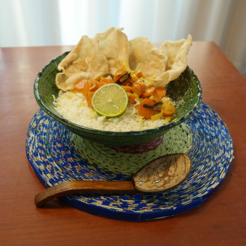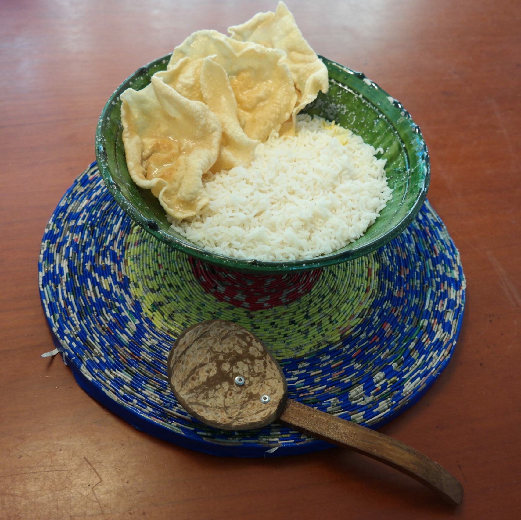 De onderzetter is handgemaakt door de kinderen van de Friendship Foundation in Sri Lanka, net als de kokosnoten lepel. Door de huidige COVID-19 restricties zitten zij nu thuis. Maar deze mooie onderzetter en lepel zitten gelukkig wel in ons pakket. Hiermee draag je bij aan de Friendship Foundation in Sri Lanka