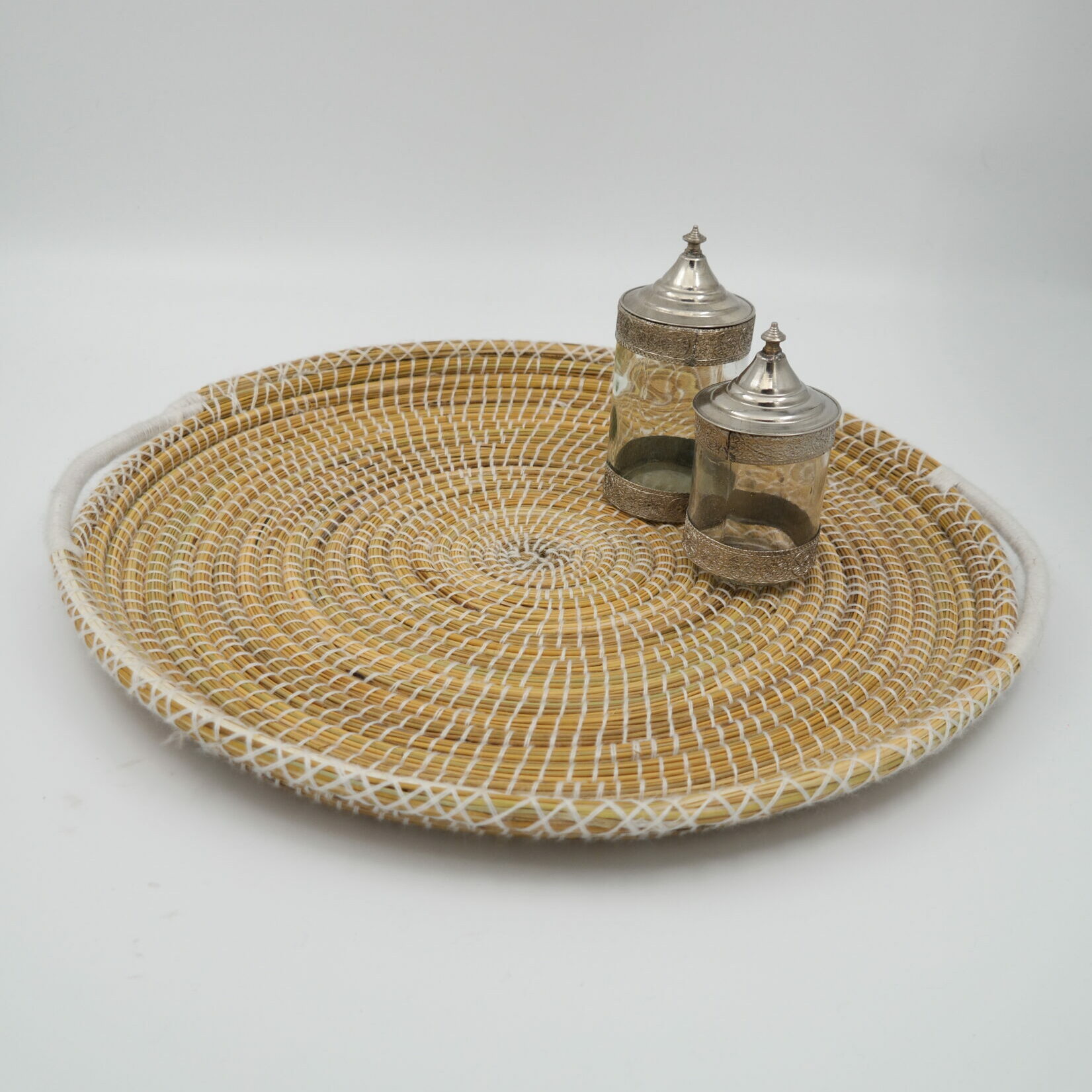 Het bijzondere is ook dat elke dienblad uniek is en met de hand wordt gevlochten van riet. Dus met dit mooie handwerk haal je niet alleen een boel sfeer in huis, je helpt er ook direct de makers in Marokko mee aan een inkomen. Dit dienblad komt namelijk direct van de makes, waar wij het voor een eerlijke prijs inkopen.