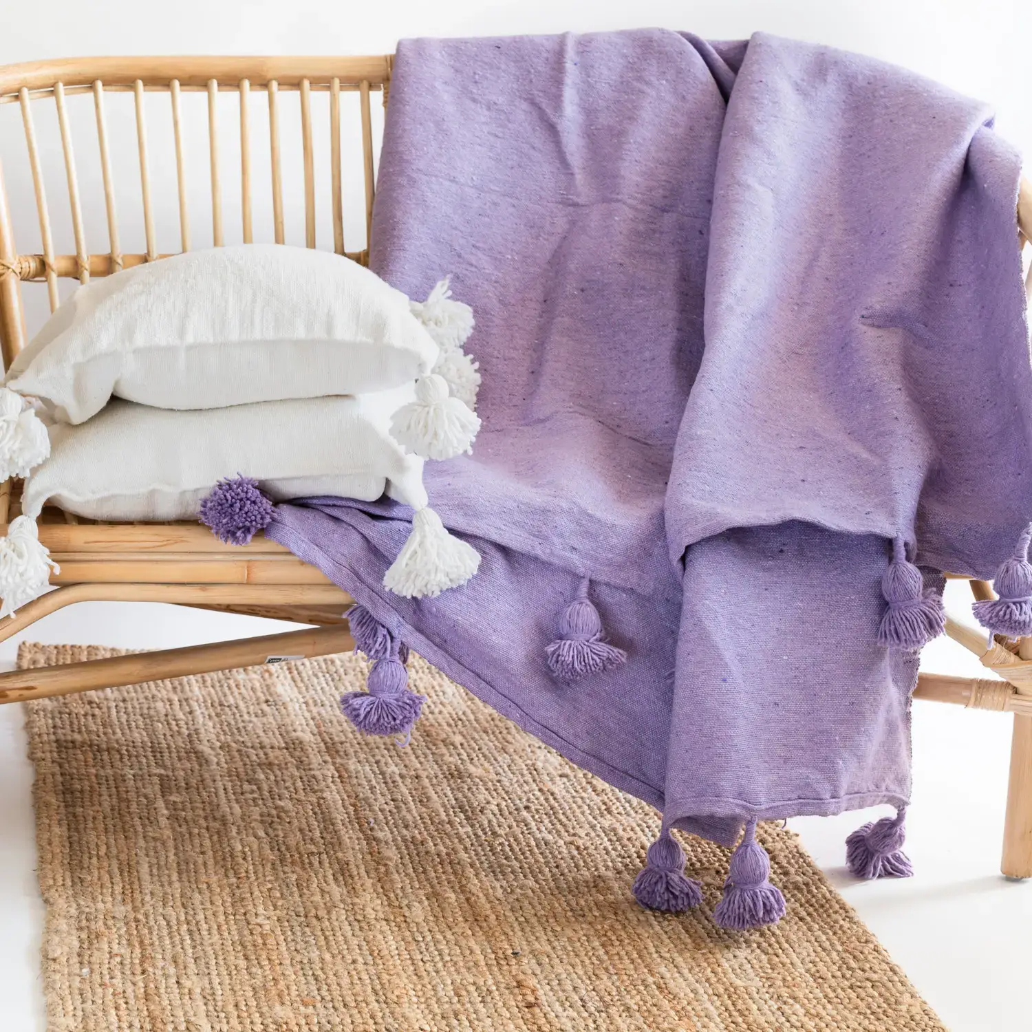 Bijpassend bij deze witte katoenen kussenhoezen met poms kan je ons mooie witte plaid bestellen, in precies de zelfde kleur. Voor een mooie combinatie. Maar je kan ook leuk combineren met de blauwe kussenhoezen en of een blauw of ecru plaid.